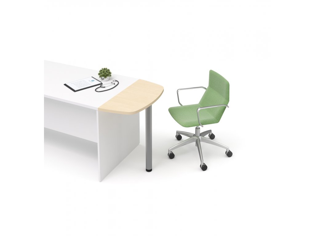 Jednací nástavba boční (L-JN-02), kovová noha s černou plastovou rektifikací, deska síly 25 mm ohraněna dokola 2 mm ABS hranou, ŠxVxH 75 cm x 75 cm x 38 cm.