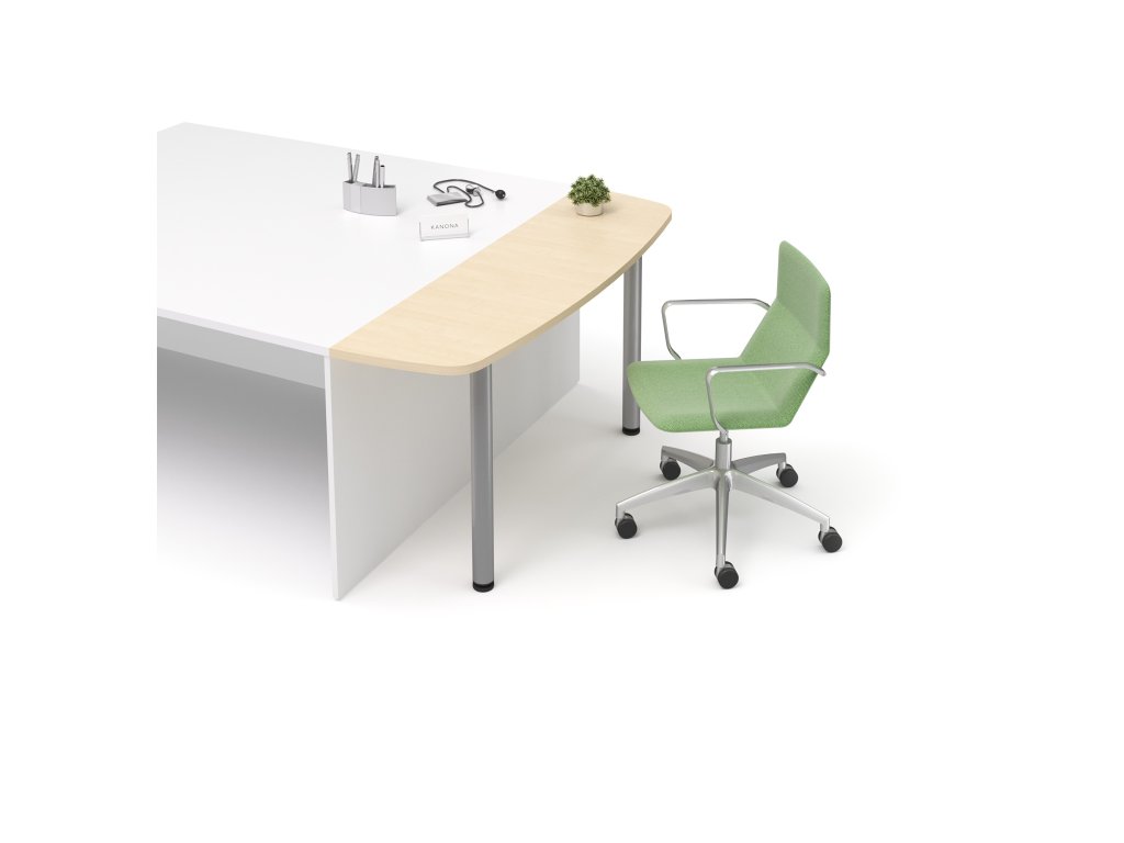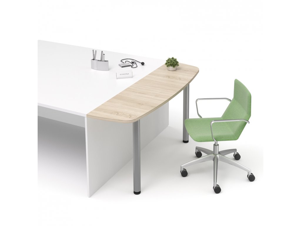 Jednací nástavba boční široká (L-JN-08) je určená pro rozšíření 2 proti sobě stojících stolů, kovová noha s černou plastovou rektifikací, deska síly 25 mm ohraněna dokola 2 mm ABS hranou, ŠxVxH 150 cm x 75 cm x 45 cm.