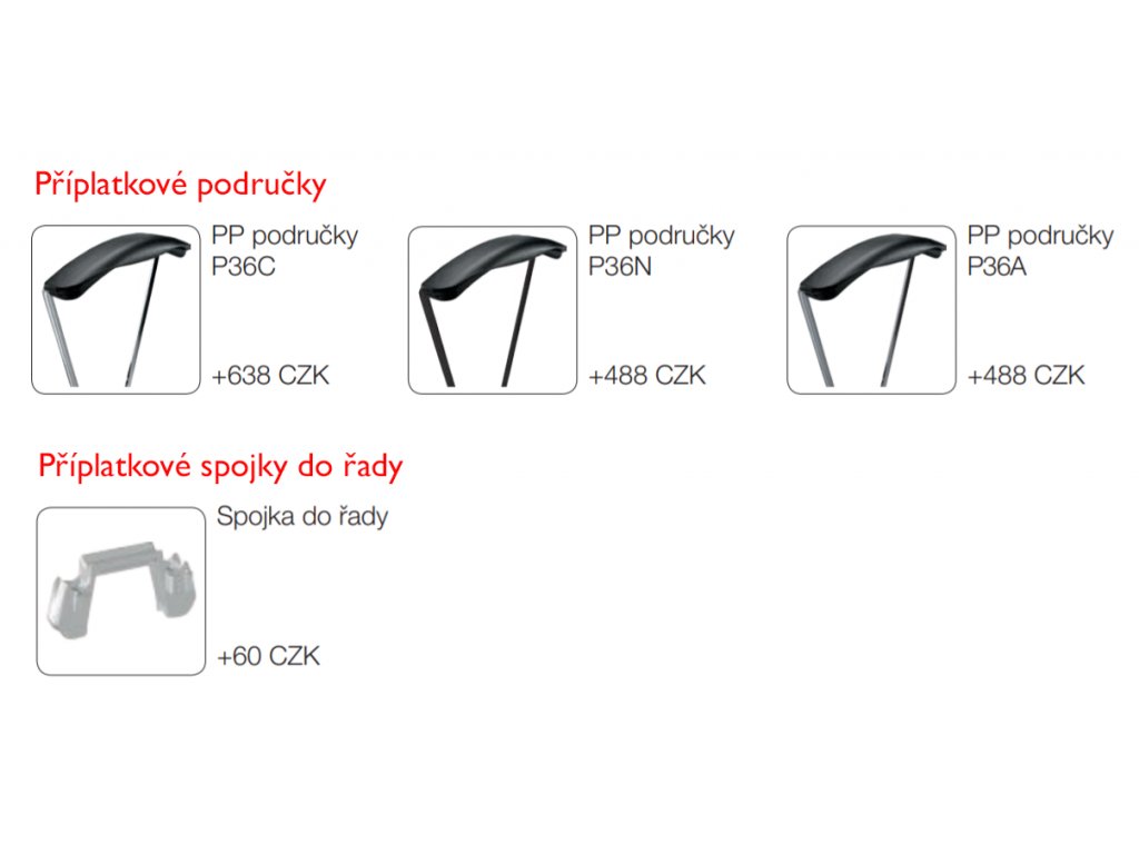 Jednací židle MIA s čalouněným sedákem a černým plastovým opěrákem, na kovové kostře. Možnost volby provedení barevnosti kostry (černá / šedá / chromovaná). Standardně dodáváno bez područek. Jednací židle MIA je stohovatelná až 15 na sobě. Nosnost židle garantovaná výrobcem je 120 kg.