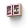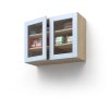 Lékařská skříň horní závěsná 2-dveřová prosklená v rámu, otevírání pomocí TIP ON pístů, šíře 90 cm (L-SKZ-290-04-RAM-TO), sololitová záda, 2 stavitelné police, 2 prosklené dveře v rámu, kuchyňské závěsy včetně protiplechů, bez úchytek, rozměry ŠxVxH 90 cm x 64 cm x 35 cm