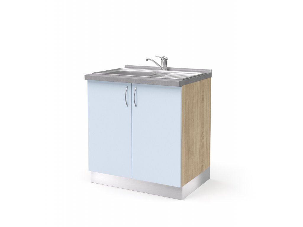 Lékařská skříň dolní pro dřez 2-dveřová 80 cm - 100 cm (L-SKD-280-02-DR), sololitová záda, 1 stavitelná police, 2 dveře, 1-dřez s odkapem, systémový ALU sokl výšky 10 cm, kovová úchytka, pracovní deska hluboká 60 cm, rozměry ŠxVxH 80 cm - 100 cm x 86 cm x 57 cm