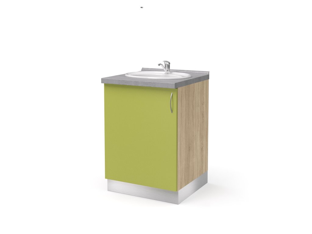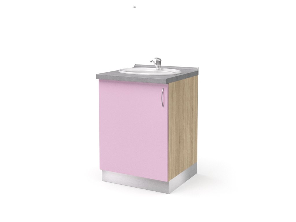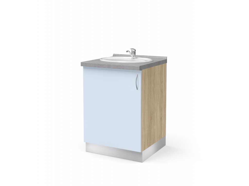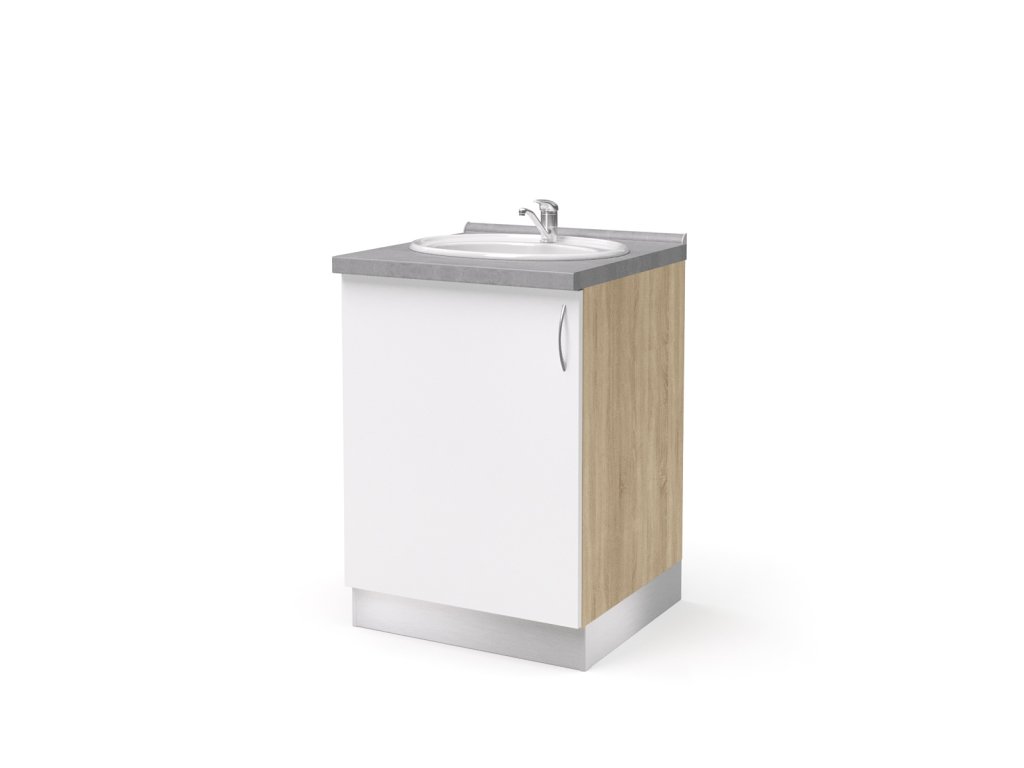 skříň dolní pro zápustné umyvadlo 1-dveřová levá 60 cm (L-SKD-260-02-UM-L), sololitová záda, 1 stavitelná police, 1 dveře, zápustné umyvadlo, systémový ALU sokl výšky 10 cm, kovová úchytka, pracovní deska hluboká 60 cm, korpus vyroben z 18 mm LTD s možností volby barevného provedení, rozměry ŠxVxH 60 cm x 86 cm x 57 cm