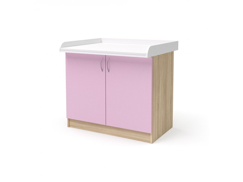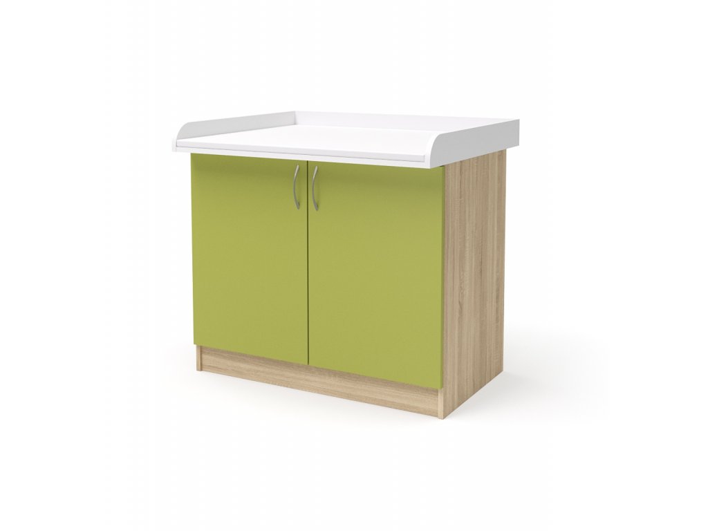 přebalovací pult 2-dveřový (L-PULT-02), pevná pohledová záda, sokl, 1 stavitelná police, 2 dveře, 2 kovové úchytky, sokl, rektifikační patky pro případné vyrovnání nerovnosti podlahy, hloubka korpusu 55 cm, hloubka přebalovací části 80 cm, výška ložné plochy přebalovací části 87 cm, koženková podložka, korpus vyroben z 18 mm LTD s možností volby barevného provedení, rozměry ŠxVxH 100 cm x 93 cm x 80 cm