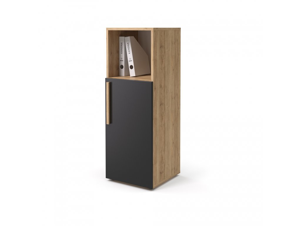 skříň střední 1-dveřová s nikou 40 cm pravá, 2 police, rektifikační patky pro případné vyrovnání nerovnosti podlahy. korpus vyroben z 18 mm LTD s možností volby barevného provedení korpusu a dveří, rozměry ŠxVxH 40 cm x 111 cm x 40 cm