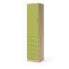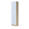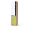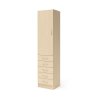 skříň vysoká 1-dveřová 5-zásuvková levá šíře 40 cm - 45 cm (L-SK-540-02-5Z-L), sololitová záda, 2 stavitelné police, 1 pevná police, 1 dveře (horní část), 5 zásuvek (dolní část) s kovovými výsuvy, sokl, 6 kovových úchytek, rektifikační patky pro případné vyrovnání nerovnosti podlahy, korpus vyroben z 18 mm LTD s možností volby barevného provedení rozměry ŠxVxH 40 - 45 cm x 195 cm x 40 cm