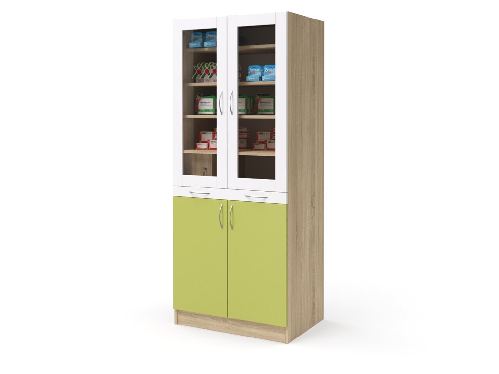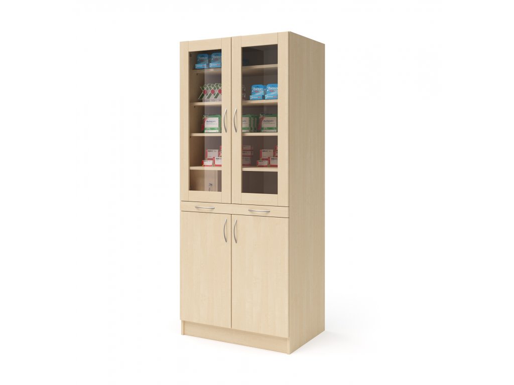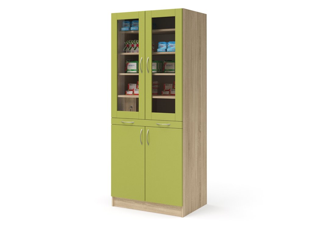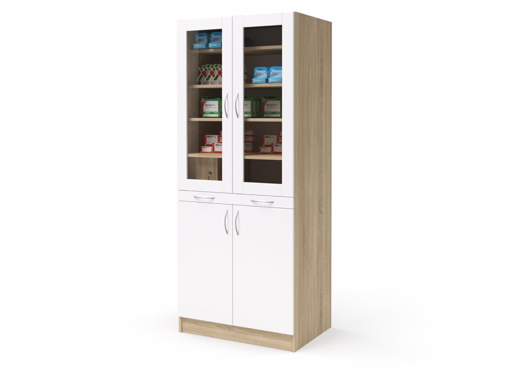 skříň vysoká 4-dveřová prosklená s výsuvnou deskou a trezorem 80 cm (L-SK-580-06-RAM-VYS)