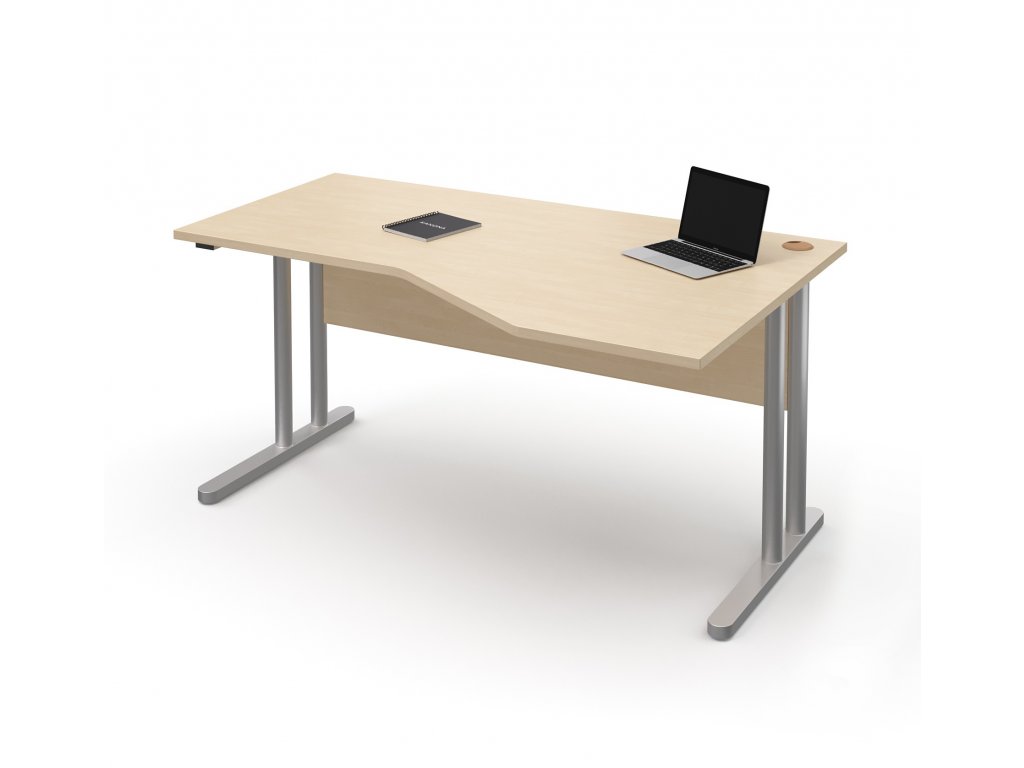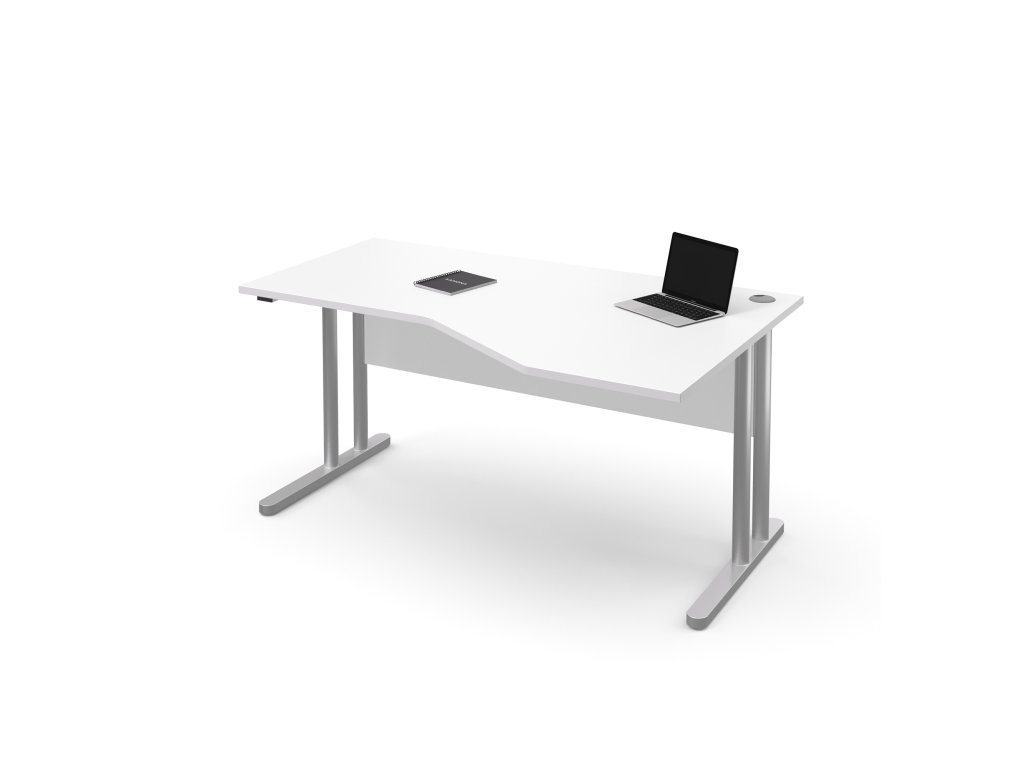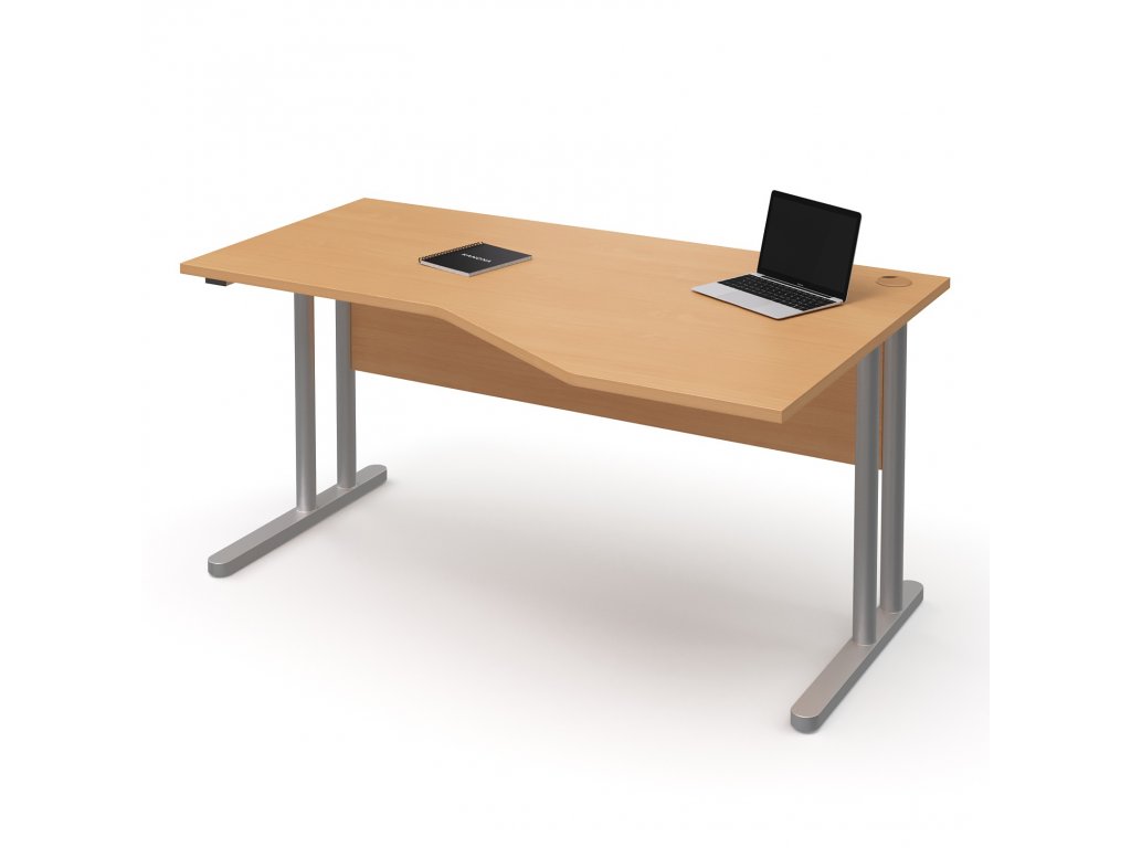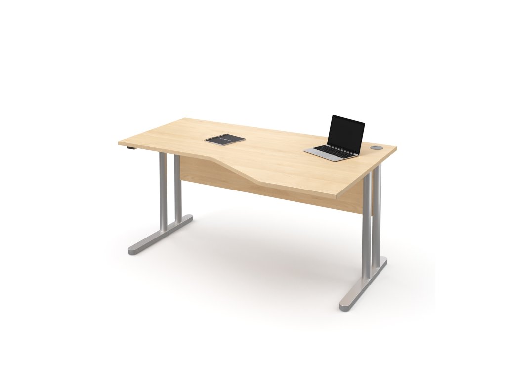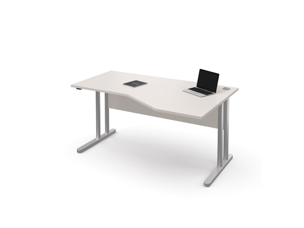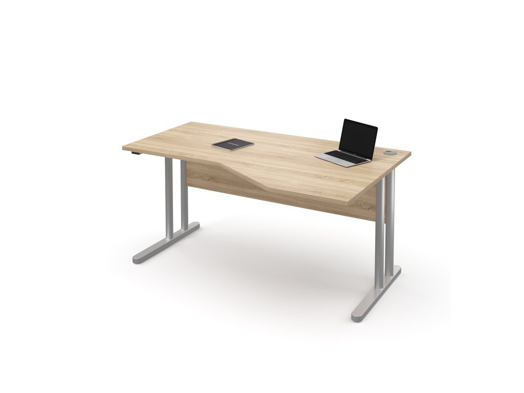 Stůl pracovní rohový pravý kovové podnože (E-STR-21-P), rektifikace, deska síly 25 mm, pevná záda stolu, možnost volby šíře stolu 160 cm - 180 cm, výška 75 cm, hloubka pracovní desky 75 cm, hloubka přístavné části 100 cm.