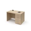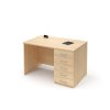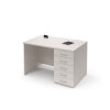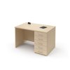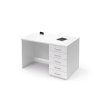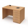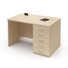 Pracovní stůl se zásuvkami po pravé straně (E-ST-11-P), obdélníková deska, plné boky, výškově stavitelné rektifikace pro vyrovnání možné nerovnosti podlahy, možnost volby barevného provedení zad, deska síly 25 mm ohraněna dokola 2 mm ABS hranou.