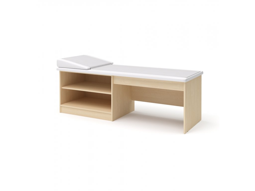 Lékařské vyšetřovací lůžko s otevřeným boxem vlevo