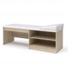 vyšetřovací lékařské lůžko s otevřeným boxem vpravo (L-LUZKO-O-P), pevná pohledová záda, sokl, 1 stavitelná police, rektifikační patky pro případné vyrovnání nerovnosti podlahy, výška ložné plochy části 65 cm, koženková ložná plocha a klínový podhlavník, korpus vyroben z 18 mm LTD s možností volby barevného provedení, nosnost lůžka při plošném zatížení 150 kg, rozměry ŠxVxH 195 cm x 75 cm x 71 cm